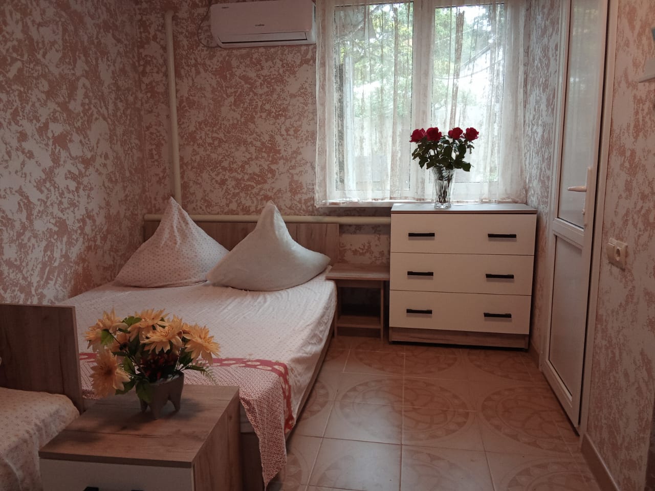 К услугам номера «стандарт» класса располагаются на первом этаже гостевого дома и имеют отдельный вход. Номеров «Эконом» класса всего 9. Они расположены на первом и втором этажах. Отдельный вход на второй этаж по внешней лестнице позволяет комфортно проходить в свой номер не доставляя не удобств для соседей, а на общем балконе оснащенным мягким уголком можно выпить чашечку утреннего кофе на свежем воздухе. На внутренней территории имеется: общая куня оснащена всем необходимым для приготовления и приема пищи , благоустроенные беседки для отдыха на свежем воздухе, а также мангальная зона со всем необходимым. К услугам отдыхающих есть парковка на несколько автомобилей. Большой двор, много зелени. На территории работает интернет Wi-Fi.